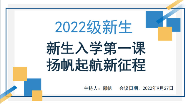 为鼓励2022级新生奋发进取,努力学习,全面发展。让2022级新生更加了解我校的奖学金、助学金政策。9月27日晚,护理与健康学院于腾讯会议召开了“新生入学第一课,扬帆起航新征程”线上主题会议,详细讲解了奖学金、助学金相关政策与申请流程,本次会议由护理与健康学院直属党支部副书记郭帆主持。