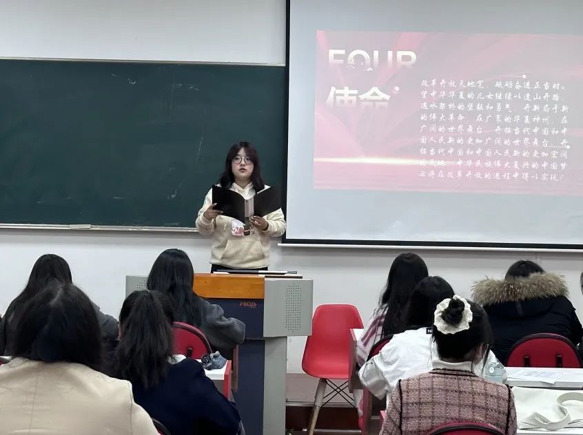 随后,同学们逐一上台围绕“二十大精神”、“党史”、“新中国史”、“改革开放史”、“社会主义发展史”、“中华民族发展史”、“新时代好青年”、“传统文化”、“乡村振兴”、“青春奋斗”等十个题材做宣讲,并结合自身经历分享感悟,引领大家学习党的创新理论,激发爱国情怀,弘扬当今时代主旋律,为同学们提供学习榜样。