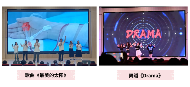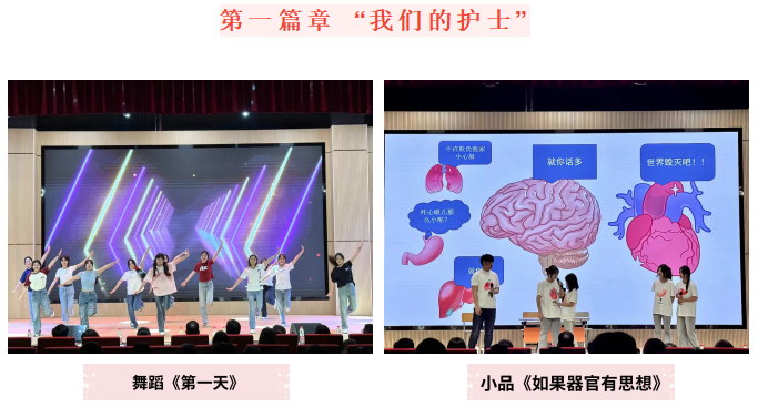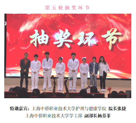 本次“5·12”国际护士节晚会精心设计了包括合唱、舞蹈、小品、朗诵、舞龙舞狮等13个形式多样的节目、1轮颁奖环节及5轮抽奖互动,晚会围绕着 “我们的护士,我们的未来”主题,为大家展现出一幕幕丰富多彩、内容别致的节目,展示了护理学子的朝气蓬勃、昂扬向上的精神风貌与青年学子作为新一代护理人的身份认同感和职业自豪感。