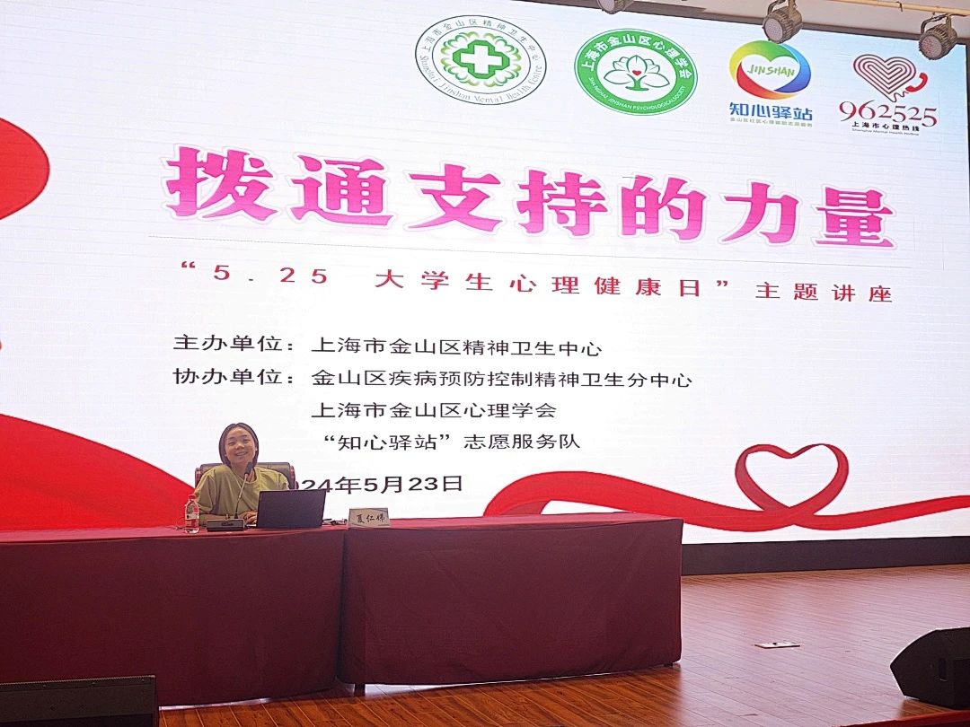在5月25日大学生心理健康日来临之际,为稳步推进“健康中国”行动,护理与健康学院邀请上海市金山区精神卫生中心来校,以“上海市心理热线”为重点,组织开展“拨通支持的力量”主题宣传活动。