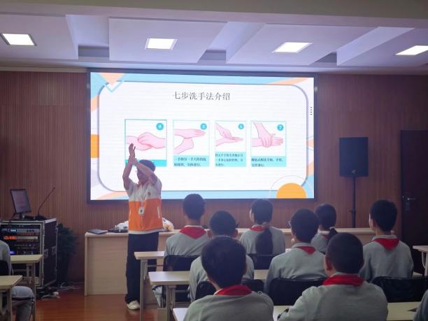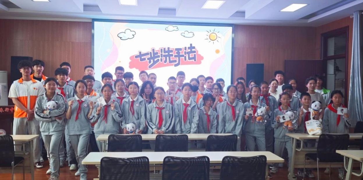 为提高中小学生对手部卫生的认识,培养正确的卫生习惯,降低疾病传播的风险,2024年5月27日在上海中侨职业技术大学的总带领下,我院社会实践部参与了学校组织的“五育四信青年说,能工巧匠进校园”活动,并在上海市金山区朱行中学开展了以“勤洗手,健康行”为主题的手部卫生知识普及讲座。