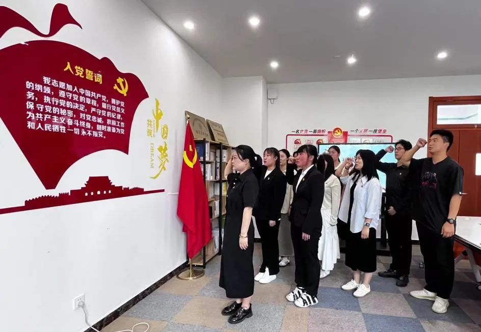 最后,郭帆老师带领支委会成员以及预备党员们进行入党宣誓,字字铿锵,句句千钧,展现出他们对党的忠诚和矢志不渝奋斗的决心。