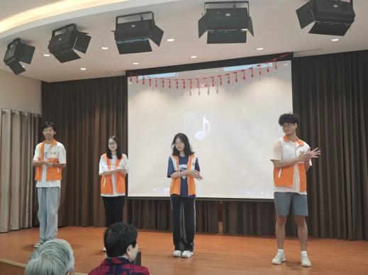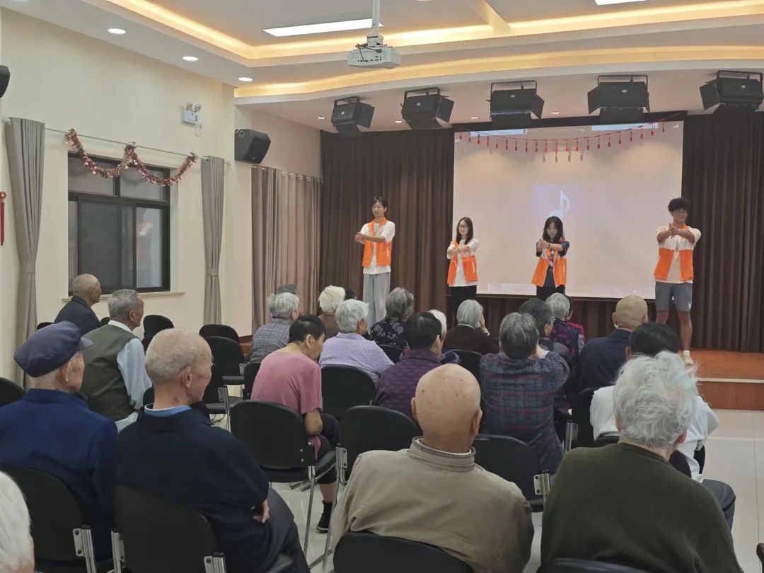 多才多艺的志愿者们为老人们带来了文艺表演活动。志愿者们首先为老人们献上了洗手操表演,不仅活跃了气氛,并以节目的形式教会老人如何正确洗手。为鼓励老人们跟随志愿者一起活动双手,志愿者们表演了手指操,降低老人们认知症的风险。