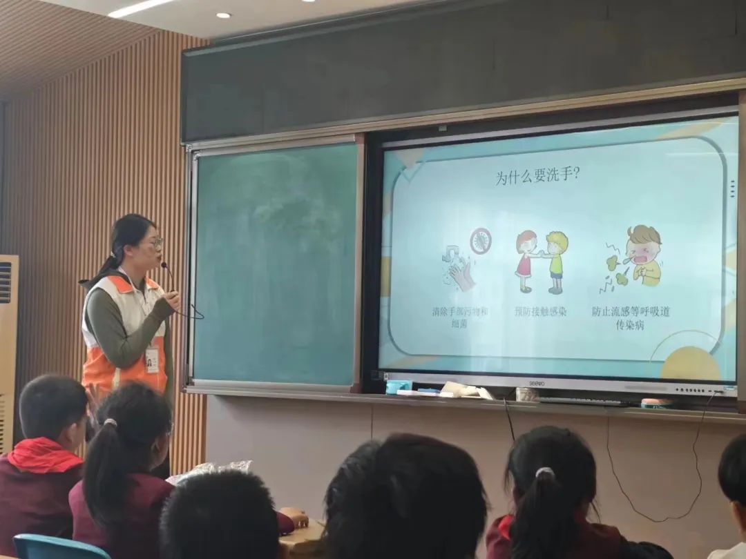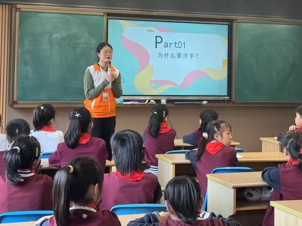 为提升中小学生对个人卫生的重视,增进中小学生对个人手部清洁的理解,培育正确洗手的习惯,护理与健康学院团委社会实践部参与了学校组织的“五育四信青年说,能工巧匠进校园”活动,并于2024年6月13日在上海师范大学附属外国语小学开展了手部卫生知识普及讲座。