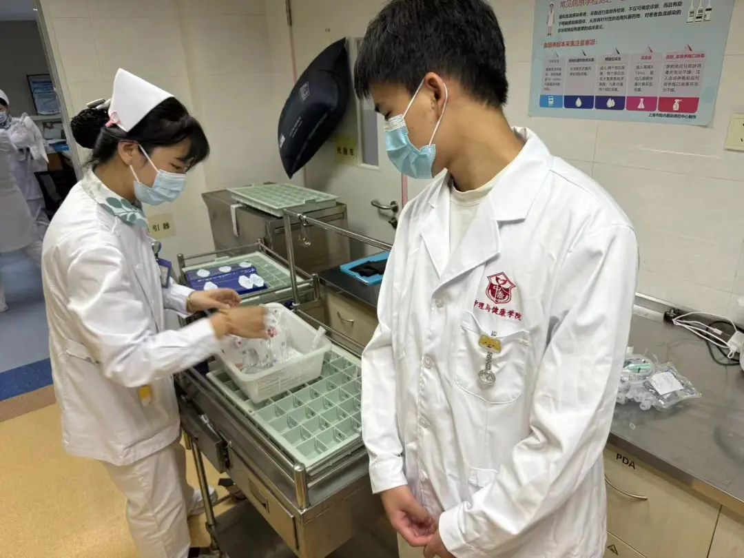 在见习中,带教老师带领同学们参观科室,并联系理论知识,详细讲述了护理相关工作上的注意事项,一一解答同学们的疑问,让同学们对护理工作有了更加清晰的认识。护理学子也始终秉承着“真诚、博爱、厚德、敬业”的院训,积极投入到学习和交流中,在带教老师的示范下观摩了各项护理操作,学习到了很多书本上学习不到的知识。