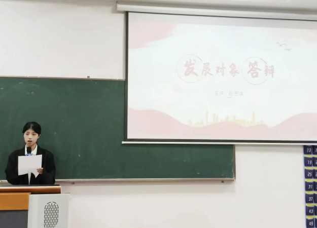 紧接着,各位入党积极分子随机抽选理论知识问题并进行回答。通过这场答辩会,在场学员们纷纷表示自己受益匪浅,表示将牢记党的教诲,以实践创新展示自我担当与责任,为实现中华民族伟大复兴贡献自己的青春力量。