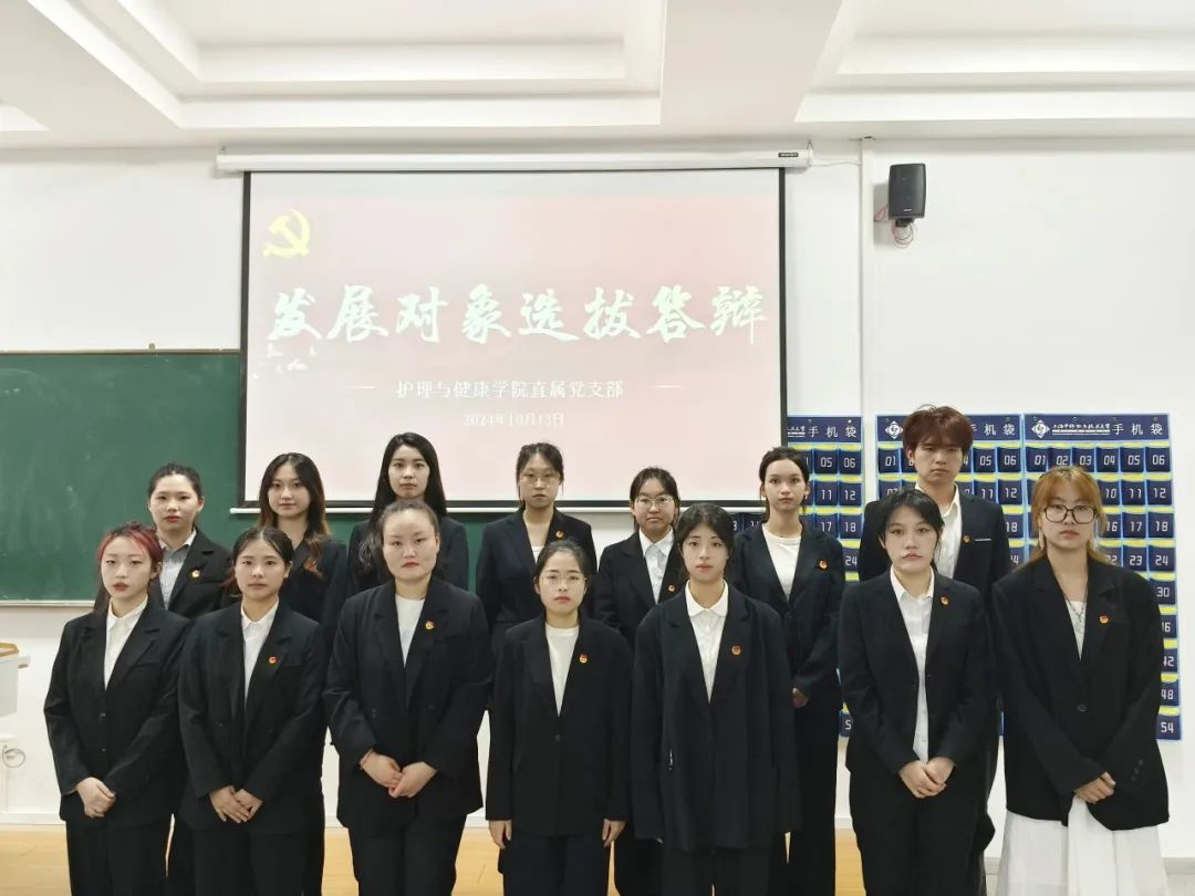 为了全面加强党员队伍的建设,确保党员高质量发展。护理与健康学院于20241013170042号楼116教室召开2024年下半年发展对象选拔答辩会。护理与健康学院直属党支部副书记郭帆、宣传委员张玲、组织委员陶丽、纪检委员汤雅琪出席了会议,此次会议由陶丽老师主持。