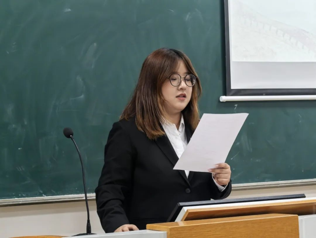 大会第五项议程,我院直属党支部副书记郭帆老师进行总结发言。首先,她对新加入团委、学生会的成员表示了热烈的欢迎。她表示,作为我院团委、学生会成员,不仅要立足当下,更需要有清晰的目标和详细的计划,只有做好明确的规划,才能确保每一项工作都能落到实处。最后,她希望团委、学生会全体成员能够坚定初心,以积极奉献与提升自我为目标,不畏艰难,为学院的发展贡献青春力量。
