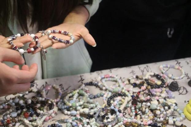 充满青春活力的“校园夜市”吸引了无数师生驻足观看,有的摊位热情吆喝,有的摊位现场制作。各色商品琳琅满目,包括校园文创好物、手工艺品、摄影书法作品、塔罗占卜等,“校园夜市”在传统售卖的基础上,融入了国风、文化、创意和开放性元素,不仅展现出同学们的创新创业精神,更为校园增添了一抹靓丽的风景线。