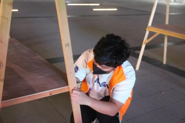 在活动开始前,志愿者们有序的分工合作,他们彼此配合默契,积极开展搬运摊铺、桌椅等工作,为后续的夜市的开展提供了坚实的基础。