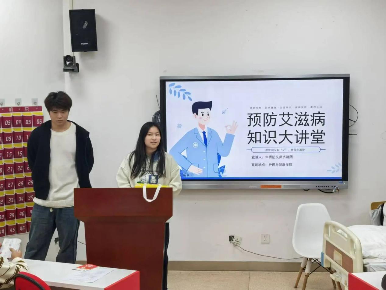 为提高在校大学生的防艾知识水平,增强防艾意识,护理与健康学院于10月30日18:30在7楼217教室开展防艾宣讲会。此次宣讲会由防艾讲师团成员袁浩然、陈钰主持,23级医仪全体同学参与。