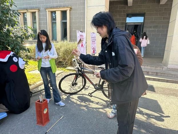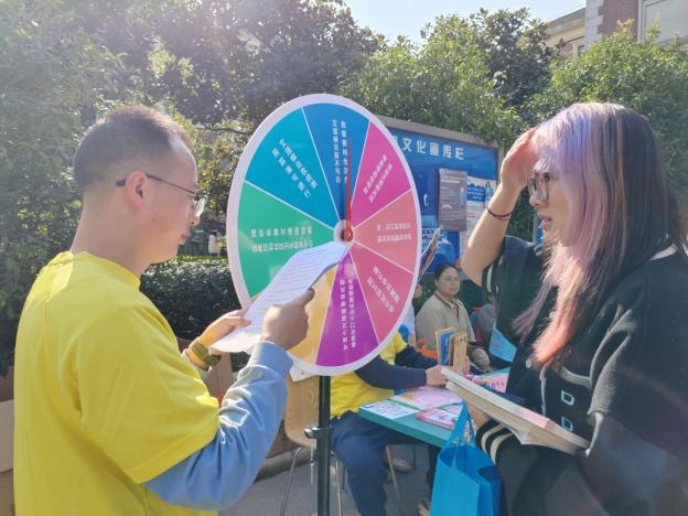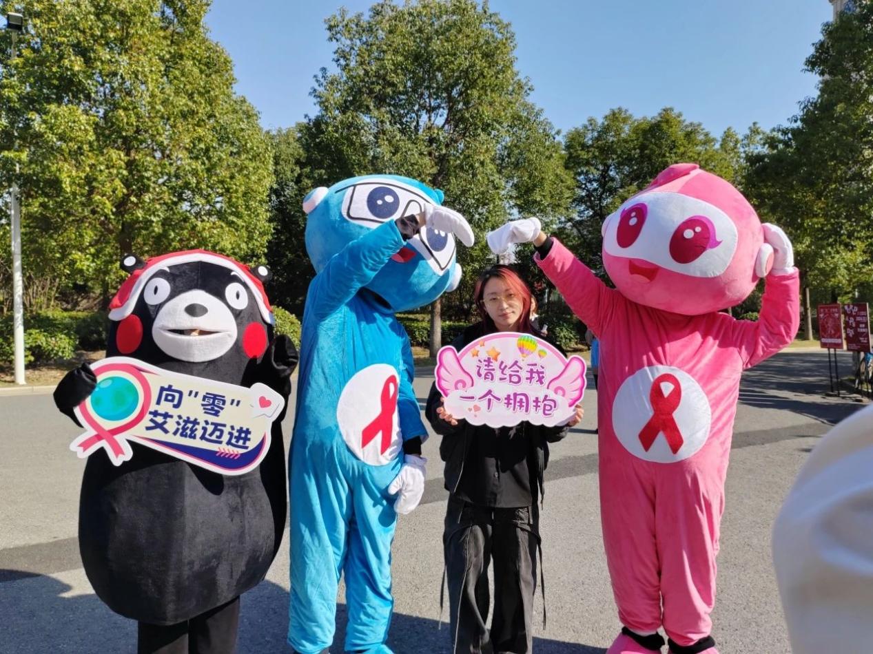 活动伊始,同学们在食堂东门外参与知识问答环节,以一种轻松有趣的方式让大家了解了艾滋病及相关预防知识。现场还有扮演“病毒携带者”的人偶,向大家寻求拥抱。这种互动方式有效地减少了大家对艾滋的恐惧,同时,同学们的积极参与,也增强了大家对艾滋病的自我防护意识。