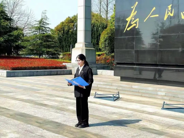 活动伊始,在庄严肃穆的纪念碑前,全体人员整齐列队,神情肃穆,向长眠于此的革命先烈鞠躬默哀,深切表达对英烈的无限敬仰与沉痛哀思。接着,党员学生刘其讲述了英雄先烈的故事,并勉励大家要以先烈精神为镜,将爱国情怀转化为勤勉治学、矢志报国的实际行动。