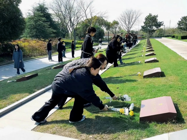 为缅怀革命先烈,传承红色基因,弘扬爱国主义精神,加强党员党性教育,护理与健康学院直属党支部党员师生及入党积极分子于202542900在金山区烈士陵园开展“青冢祭清明,传承家国情”清明祭扫党日活动。