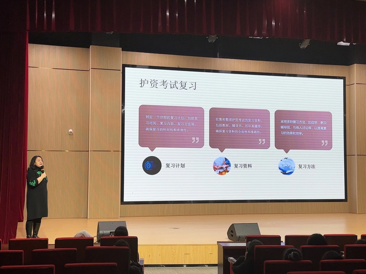 随后,顾丽华老师还强调了护士资格证考试对护理从业者的重要性,她指出复习备考工作需要贯穿整个实习阶段,提醒同学们需要在实习期间合理安排时间,进行复习备考。同时,她还强调同学们在实习期间要严格跟随带教老师的安排,认真完成临床实习任务,同时注重职业防护,谨防职业暴露,确保实习工作顺利进行。