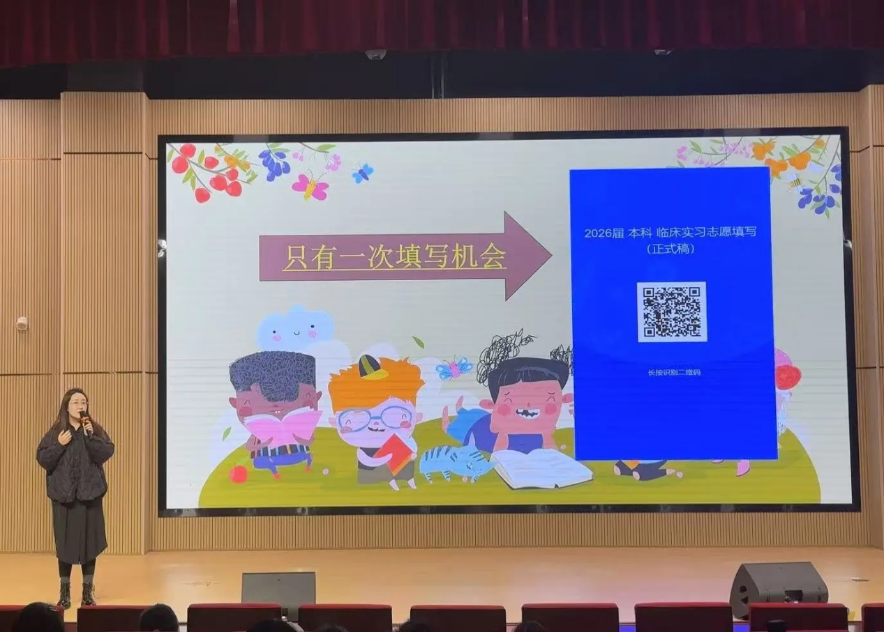 最后,护理与健康学院教学副院长曹雪楠进行总结发言。她提醒同学们在填报志愿时应理性思考,根据个人职业规划和发展目标,合理选择适合自己的实习单位。她强调,实习不仅是专业技能的提升,更是职业素养的锤炼。希望同学们在未来的实习工作中秉持“真诚、博爱、厚德、敬业”的院训,以满怀热情积极投入到工作中去,确保实习工作顺利完成。