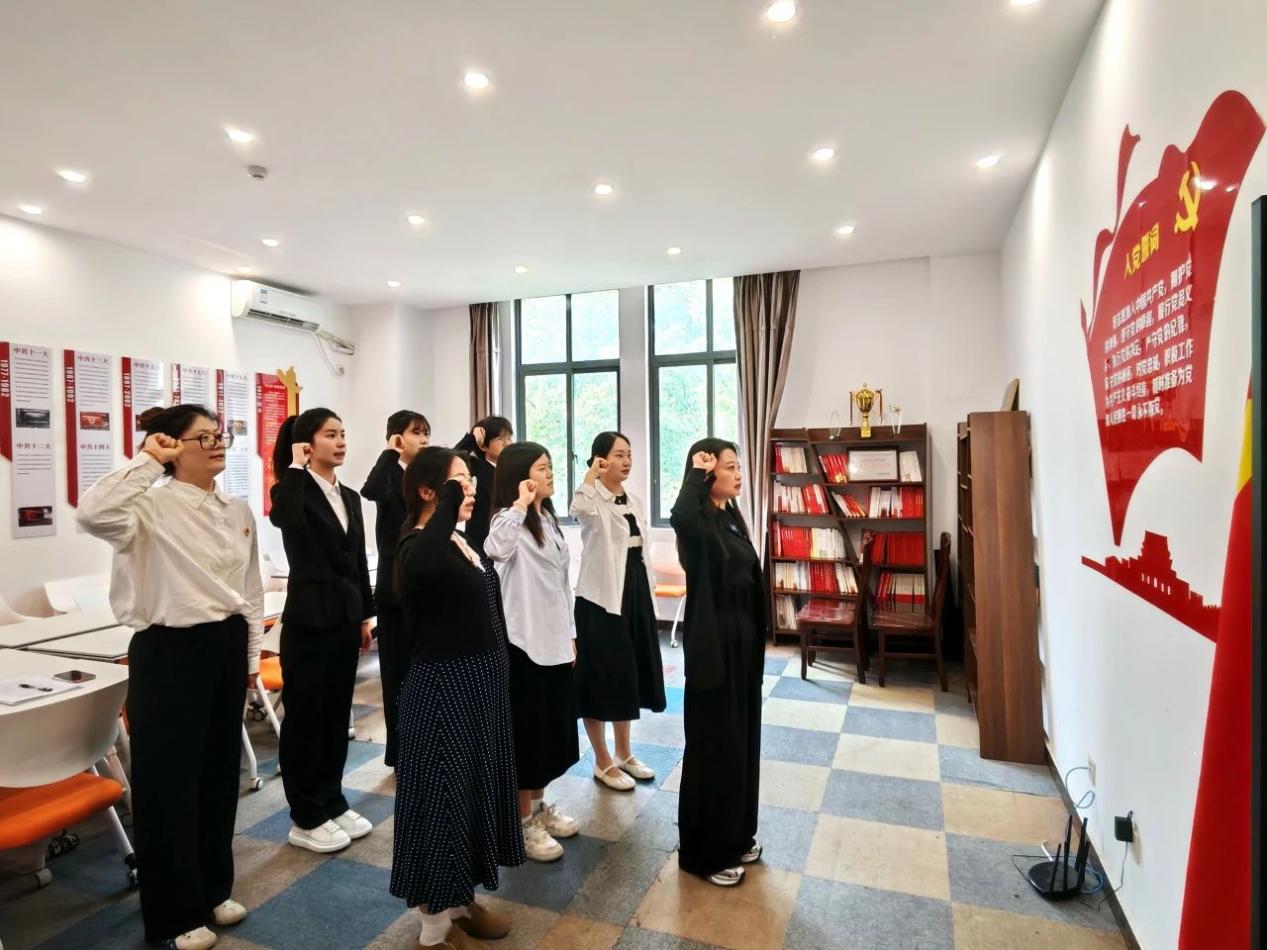 最后,护理与健康学院直属党支部副书记郭帆带领支委会成员与中共预备党员面向党旗庄严宣誓。誓言字字有力、掷地有声,彰显出了他们对党的无限忠诚和为党的事业不懈奋斗的坚定信念。