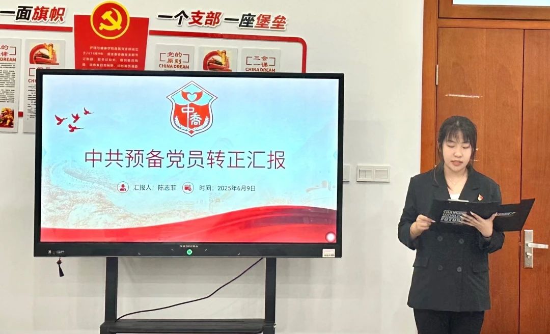 首先,姚凤怡、陈志菲两位同志分别就自己在预备期间的各方面表现进行汇报,总结自己在预备考察期间的思考、成长与收获,明确了未来的发展方向,表达了对党的忠诚与向往。
