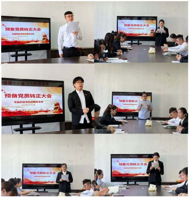 At noon on November 1, the Party Branch directly under the School of Food and Pharmacy held a meeting for the regularization of preparatory party members in Building 6, Room 304. This meeting was chaired by teacher Zhao Yanqin, and more than two-thirds of the party members of the college, teachers and students, participated in the meeting.