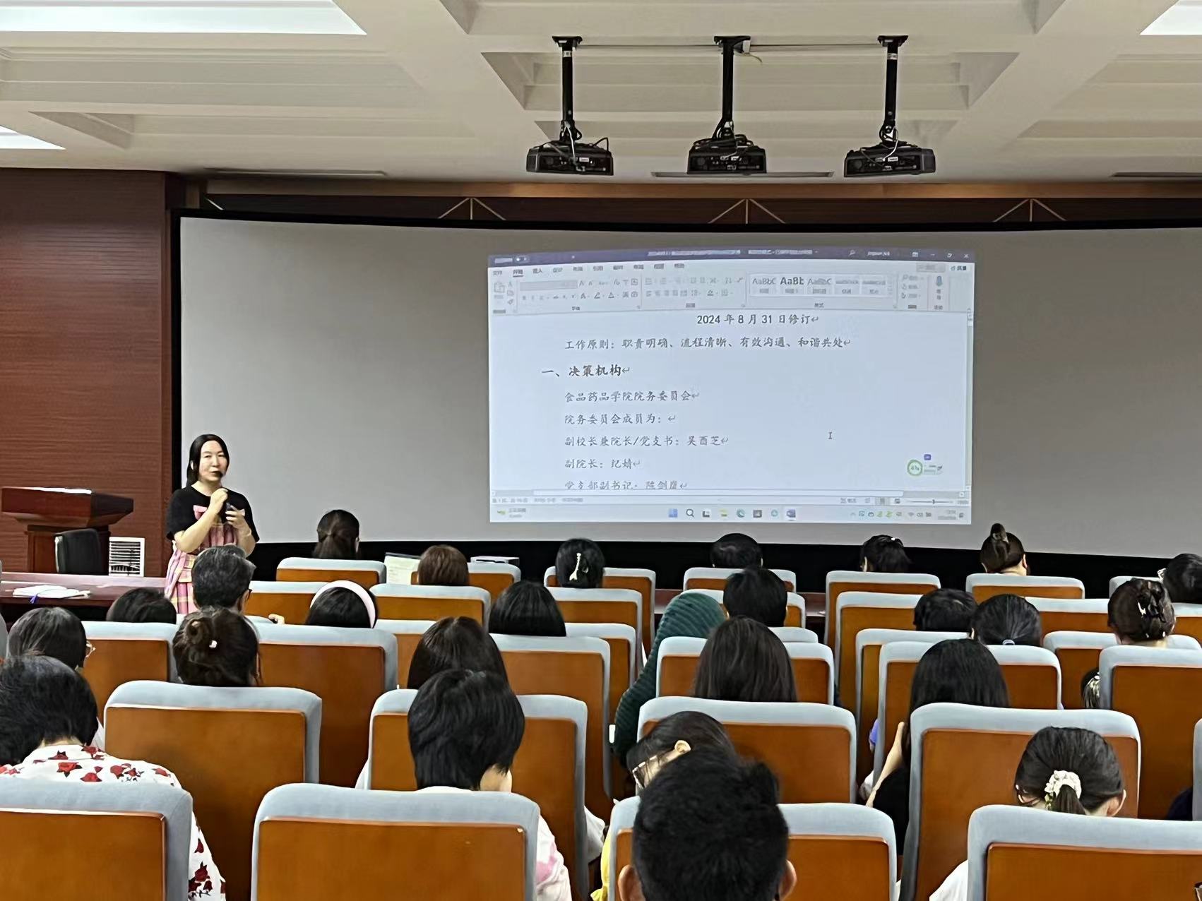 On the afternoon of September 4th, the School of Food and Pharmacy held a new semester faculty meeting at Building 6, Room 306. The meeting was chaired by Vice Dean Ji Jing and attended by Vice President and Dean of the School of Food and Pharmacy, Professor Wu Youzhi.