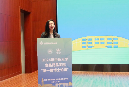 In order to deepen the study of the spirit of the 20th National Congress of the Communist Party of China, accelerate the construction of a strong education country, enhance academic atmosphere, and promote scientific research exchanges, the School of Food and Pharmacy at Shanghai Zhongqiao Vocational and Technical University held the First Doctoral Forum at 9:30 am on October 25, 2024 in the auditorium of the Graphic Information Building. This forum is chaired by Ji Jing, Vice Dean of the School of Food and Pharmacy.