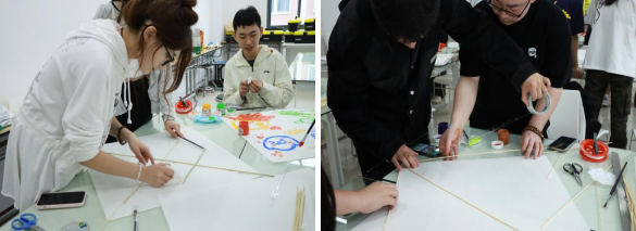 Classmates focused on following the blueprint, cleverly crossing bamboo strips and carefully winding cotton thread. In the lively communication, they not only mastered the skills of force and binding, but also gained full enthusiasm and focus in cooperation.