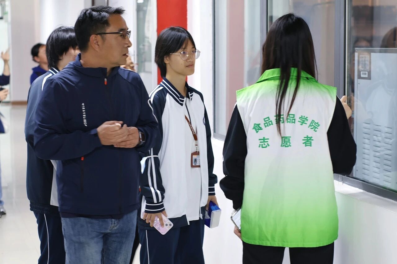 Under the enthusiastic guidance of student ambassadors, students and parents toured the campus and the School of Food and Pharmaceutical Sciences. Through the explanations, parents learned about the school’s facilities and training conditions, and the advanced equipment left them impressed. This not only reassured them about their children’s future learning environment but also increased their recognition and trust in the School’s integrated training model. Vice Deans Ji Jing and Wang Yuan accompanied the tour, engaging in friendly conversations with parents and students and addressing their concerns.