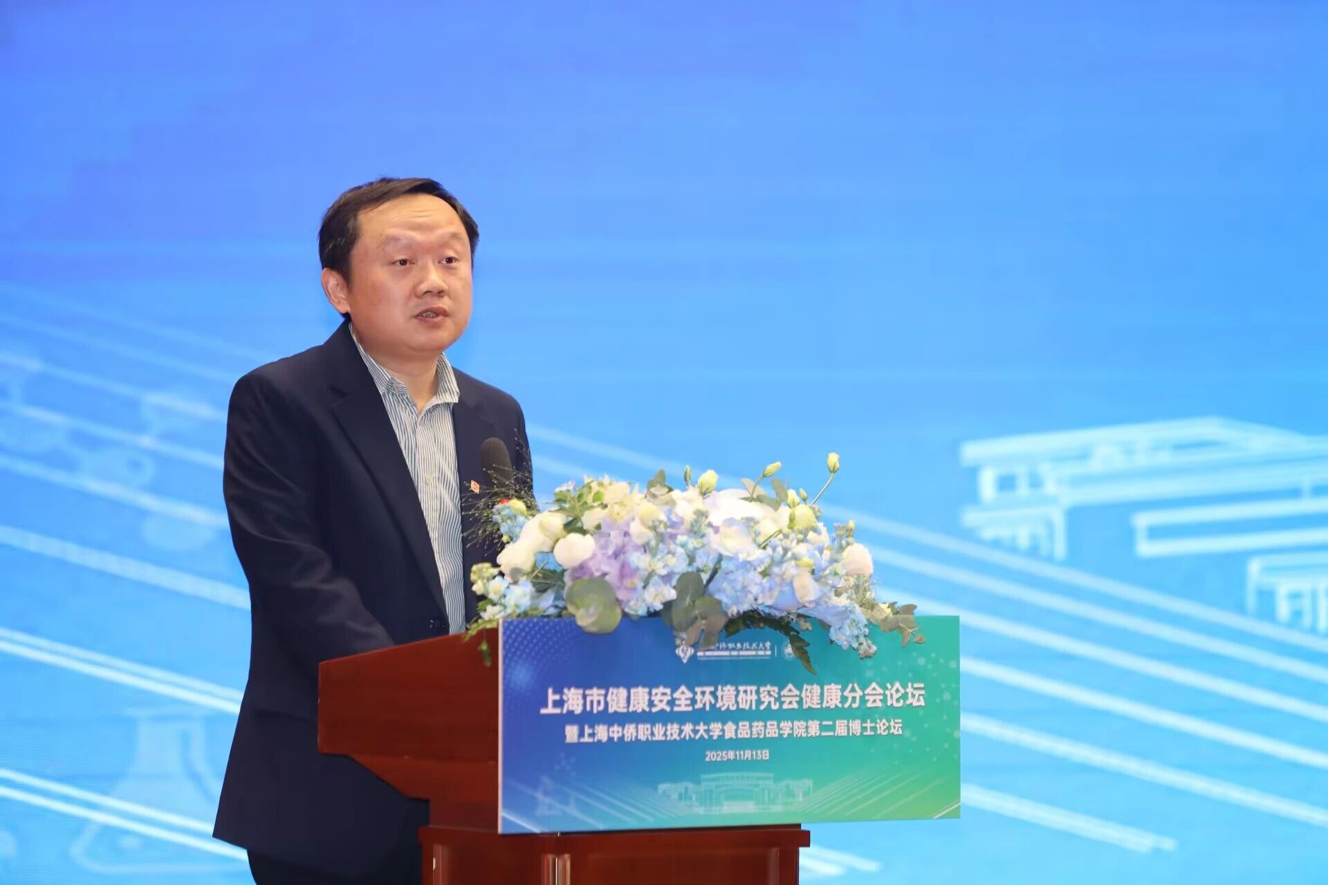 In order to thoroughly implement the important deployment of the 20th National Congress of the Communist Party of China to promote the construction of a healthy China, fully implement the requirements of the Healthy China 2030 plan and the Healthy Shanghai 2030 plan, and focus on solving the pain points of scattered resources and insufficient collaboration between industry, academia and research in the health field, the Health Branch Forum of the Shanghai Health, Safety and Environment Research Association and the Second Doctoral Forum of Shanghai Zhongqiao Vocational and Technical University were held grandly on November 13, 2025 in the report hall on the second floor of the university's graphic and information building. Vice Director Gao Xia of the Health Commission of Jinshan District, Shanghai, Executive Vice President Zhou Jun and Secretary General Cai Dongsheng of the Shanghai Health, Safety and Environment Research Association, Executive Vice President Zhao Bin and Vice President and Chairman of the Health Branch Wu Youzhi of Shanghai Zhongqiao Vocational and Technical University, and Former Dean of the School of Bioengineering at East China University of Science and Technology and Vice Chairman of the Health Branch Zhuang Yingping were invited to attend. Experts, scholars, teachers and student representatives from universities, research institutes, tertiary medical institutions, and health enterprises gathered together to witness the birth of a new platform for communication and cooperation in the health field and explore new paths for high-quality development of the industry.